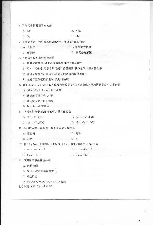 河北省2016年12月普通高中学业水平考试化学试题(2)
