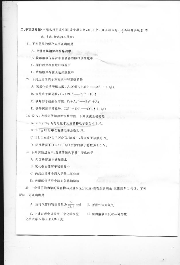 河北省2016年12月普通高中学业水平考试化学试题(4)