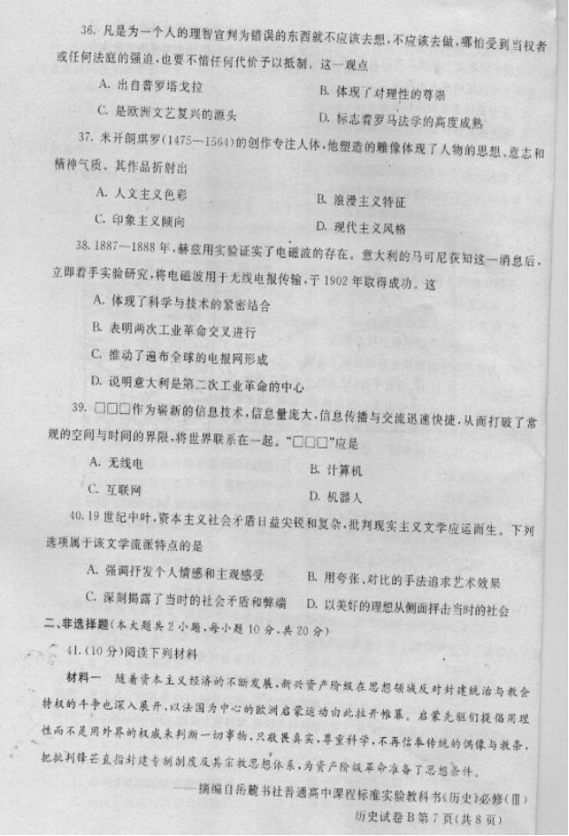 河北省普通高中2016年12月学业水平考试历史试题(7)