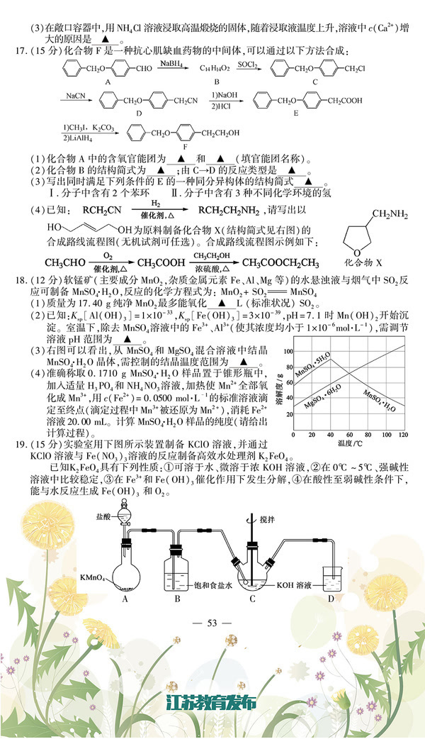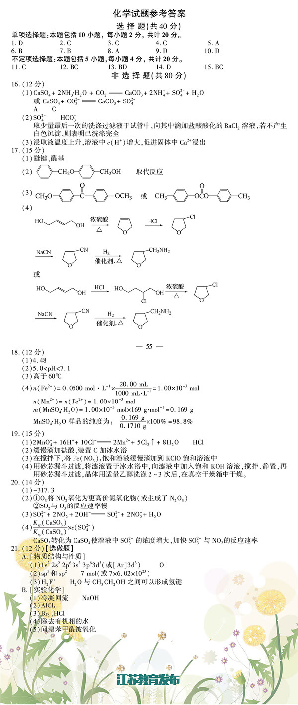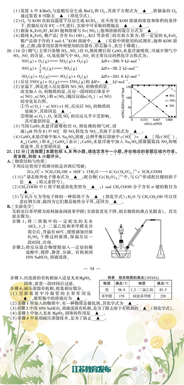 2016年江苏小高考化学的试题及答案,在21世纪教育网上会在2016年3月20日之后进行发布,请各位老师耐心等待21世纪教育网的发布和整理。 2016年江苏小高考化学的具体的考试时间是:10:45-12:00 请各位考生注意进行化学科目的重点知识点的复习和整理。 >>>【点击下载】2016江苏小高考生物试卷答案<<< 下面是21世纪教育网整理的2015年的江苏小高考化学的试题及答案,各位考生可以参考一下:
