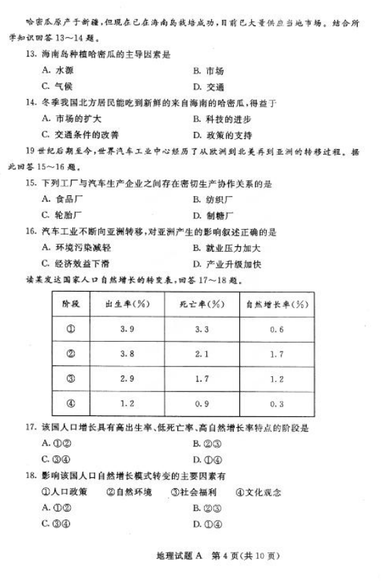 内蒙古自治区2016年1月普通高中学业水平考试地理试题及答案(4)