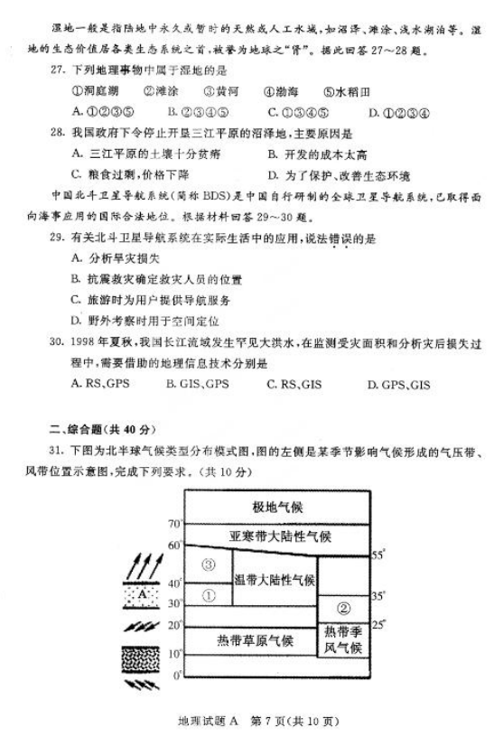 内蒙古自治区2016年1月普通高中学业水平考试地理试题及答案(7)