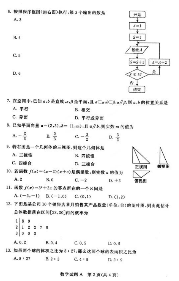 内蒙古2016年1月普通高中学业水平考试数学试题及答案(2)