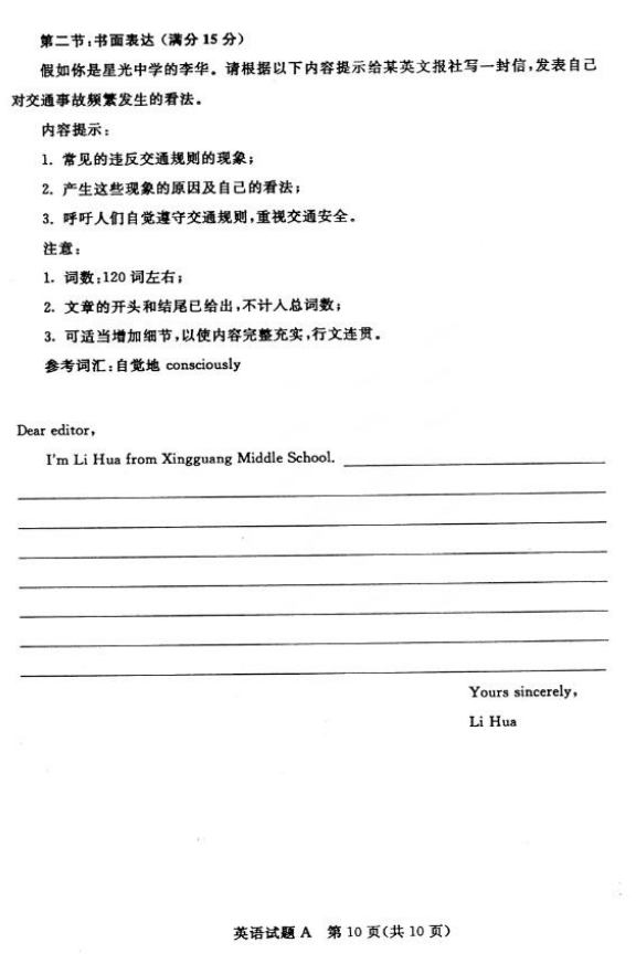 内蒙古2016年1月普通高中学业水平考试英语试题及答案(10)