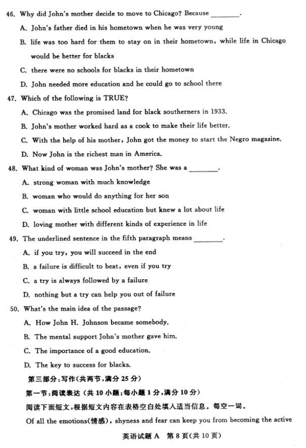 来源: 高中学业水平考试网 英语试题及 2016-09-08
