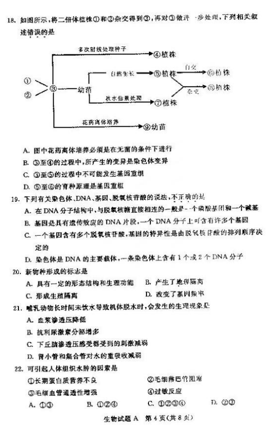 内蒙古自治区2016年1月普通高中学业水平考试生物试题及答案(4)