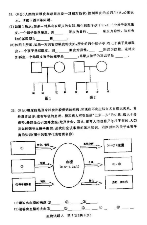 内蒙古自治区2016年1月普通高中学业水平考试生物试题及答案(7)