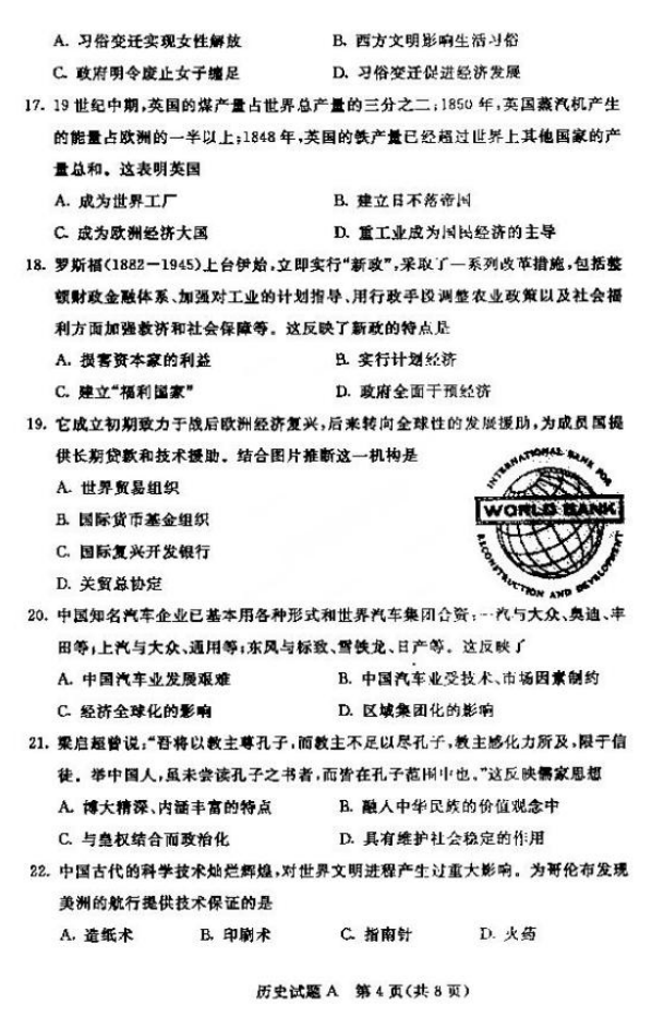 内蒙古自治区2016年1月普通高中学业水平考试历史试题及答案(4)