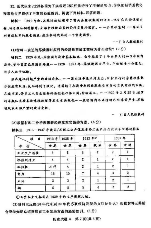 内蒙古自治区2016年1月普通高中学业水平考试历史试题及答案(7)