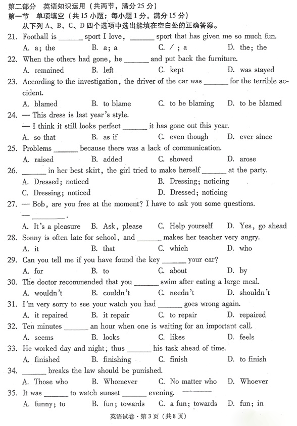 云南2015年1月普通高中学业水平考试英语试题及答案(3)