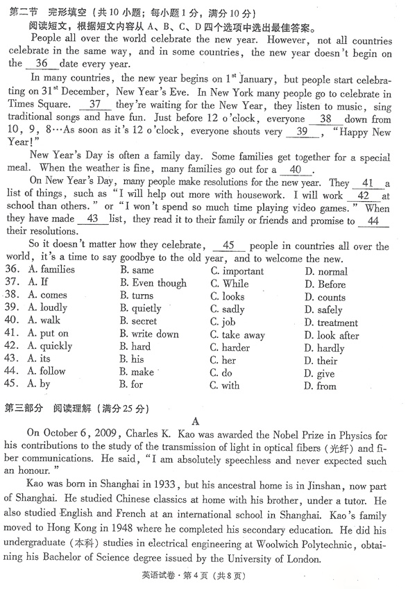 云南2015年1月普通高中学业水平考试英语试题及答案(4)