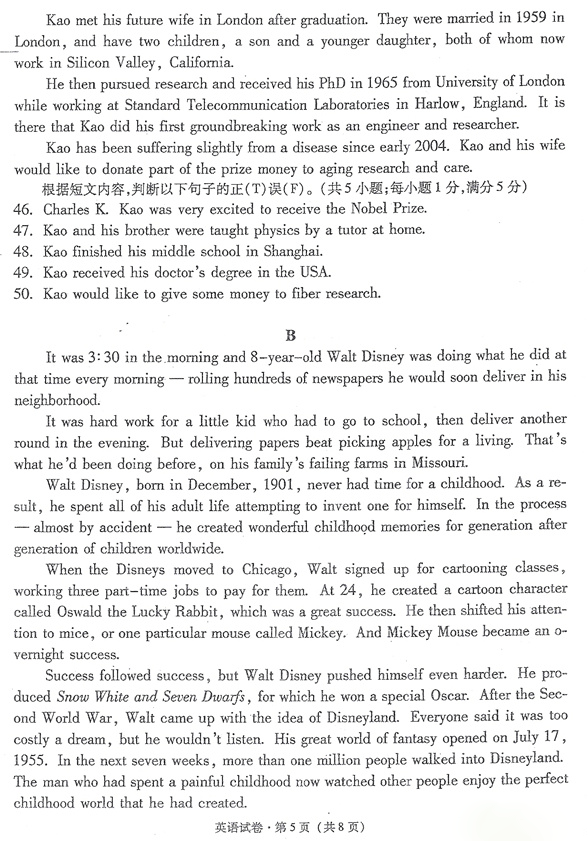 云南2015年1月普通高中学业水平考试英语试题及答案(5)
