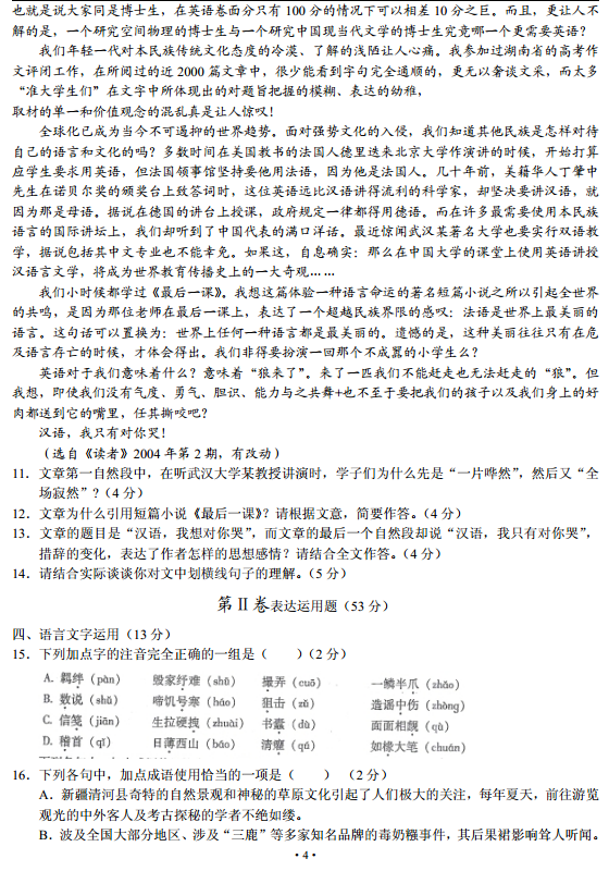 云南省2015年1月普通高中学业水平考试语文试题及答案(5)