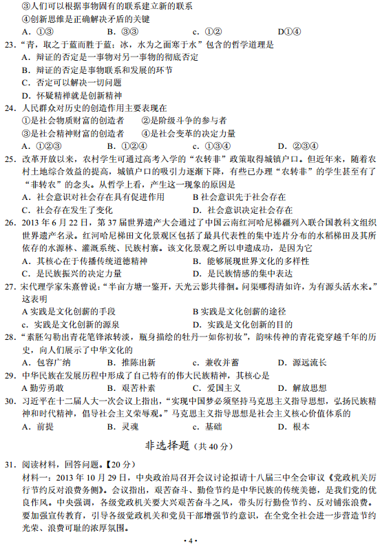 云南省2015年1月普通高中学业水平考试政治试题及答案(4)