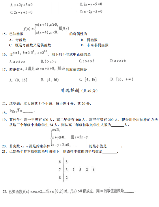 云南省2015年1月普通高中学业水平考试数学试题及答案(3)