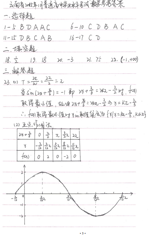 云南省2015年1月普通高中学业水平考试数学试题及答案(5)