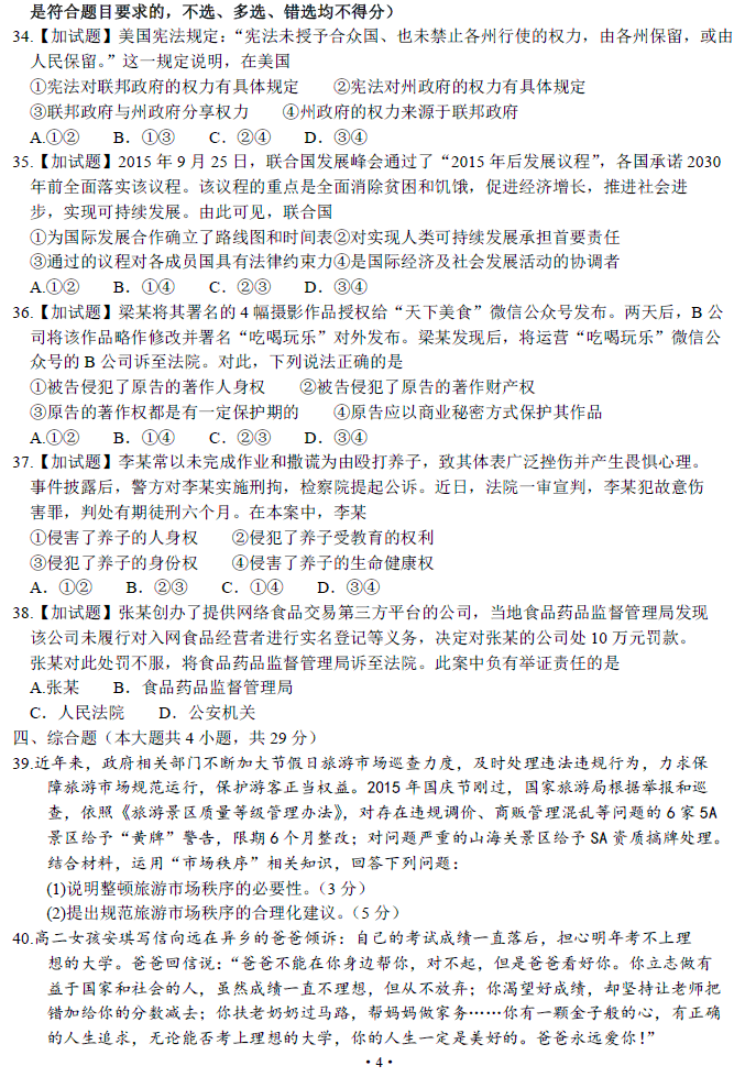 2015年10月浙江省普通高中招生选考科目考试试思想政治试题及答案(5)