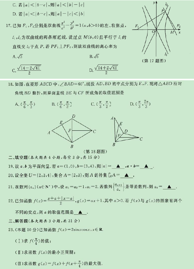 浙江省2015年10月高中学业水平考试高考选考科目数学试题及答案(3)