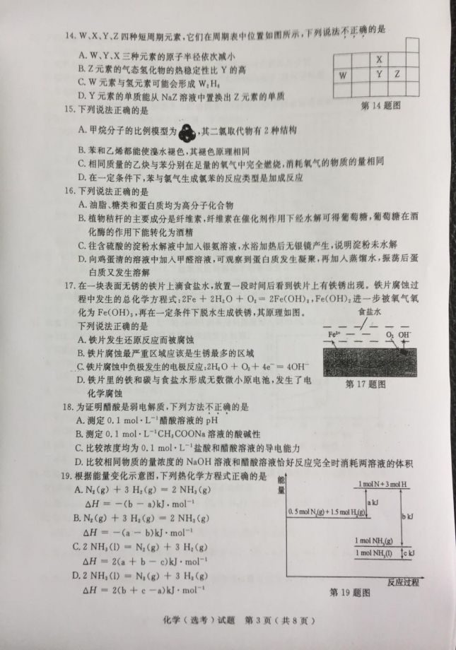 浙江省2016年10月普通高校招生选考科目考试化学试题(3)
