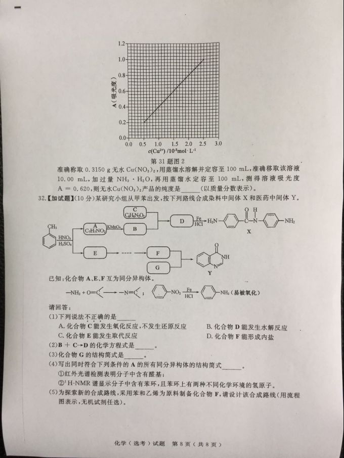 浙江省2016年10月普通高校招生选考科目考试化学试题(8)
