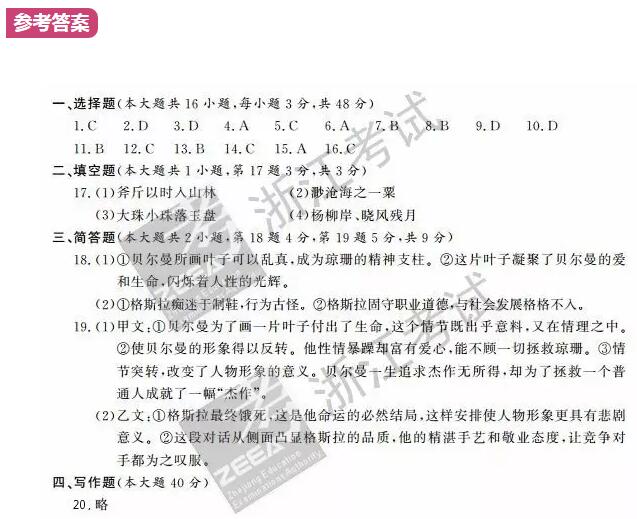 2016年10月浙江省普通高中学业水平考试语文试题及答案(6)