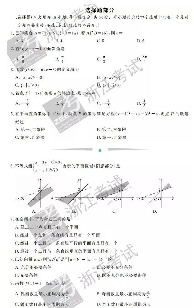 2016年10月浙江省普通高校招生选考科目考试数学试题及答案