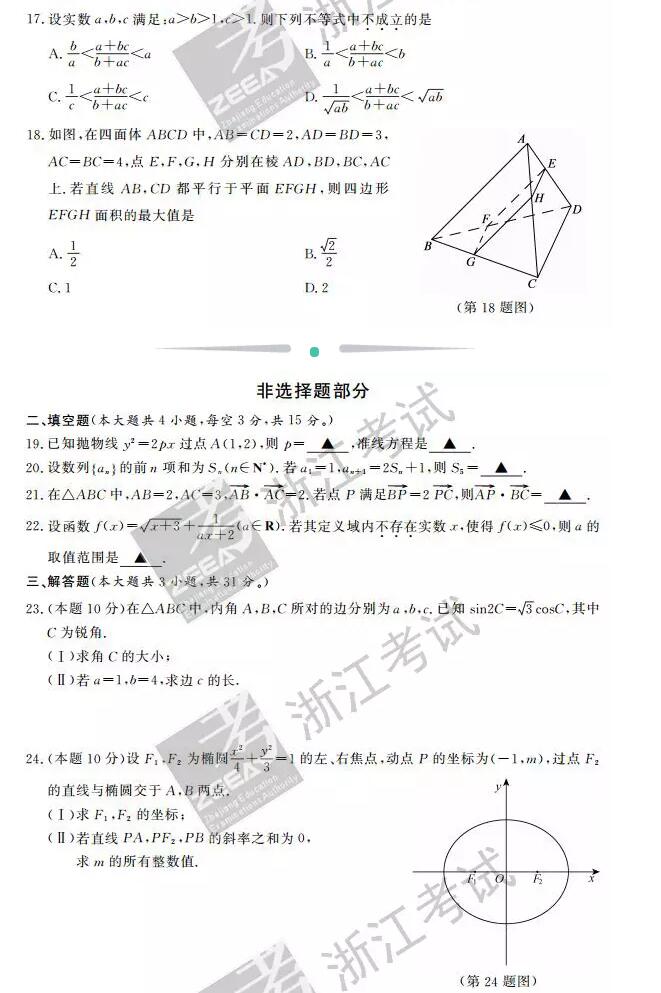 浙江省2016年10月普通高校招生选考科目考试数学试题及答案(3)