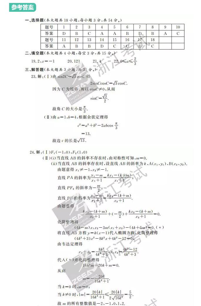 浙江省2016年10月普通高校招生选考科目考试数学试题及答案(4)