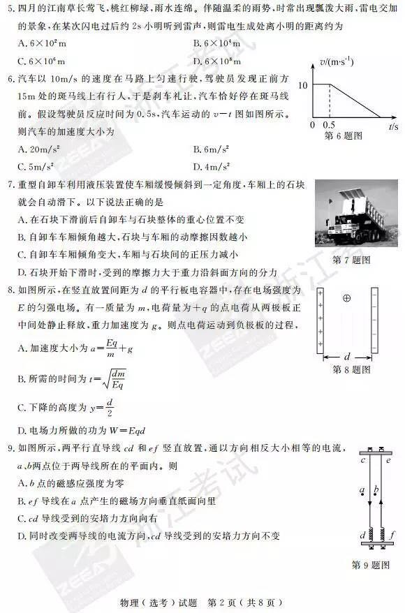 浙江省2017年4月高中学业水平考试物理试题及答案(2)