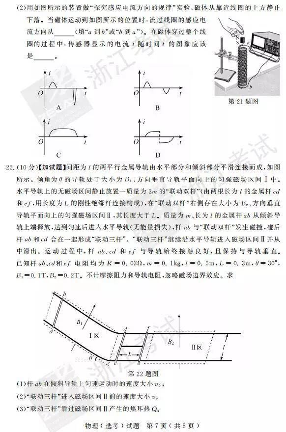 浙江省2017年4月高中学业水平考试物理试题及答案(7)