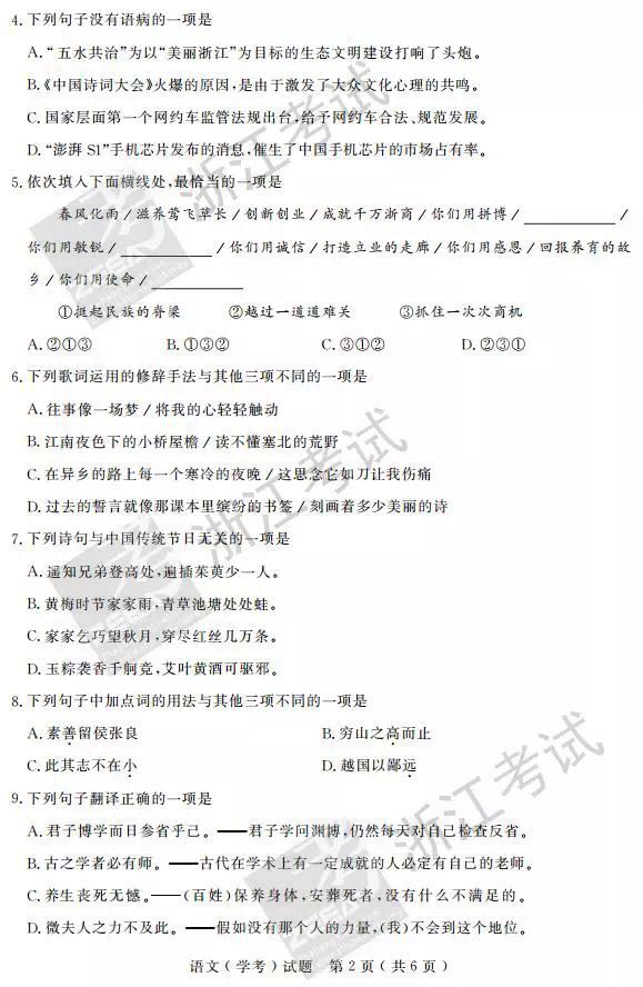 浙江省2017年4月高中学业水平考试语文试题及答案(2)