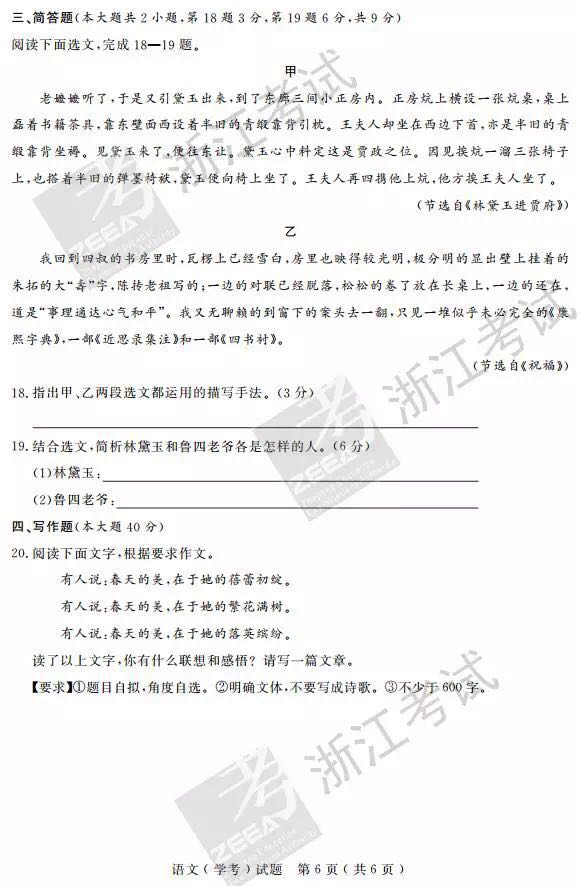 浙江省2017年4月高中学业水平考试语文试题及答案(6)
