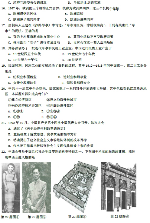 浙江2015年1月高中学业水平考试历史试题及答案(3)