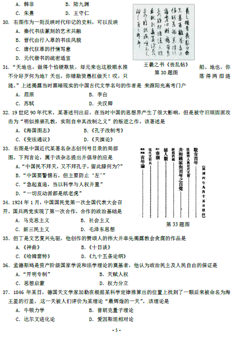 浙江2015年1月高中学业水平考试历史试题及答案(5)