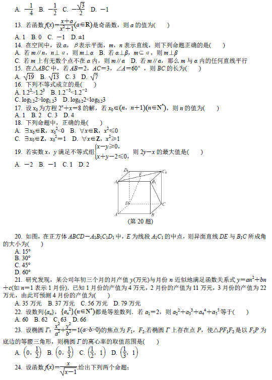 浙江省2015年1月普通高中学业水平考试数学试题及答案(2)