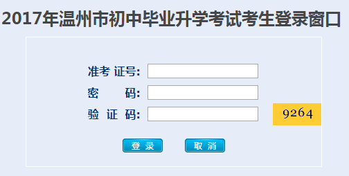 2017年温州市初中毕业升学考试考生登录窗口 温州中招管理系统